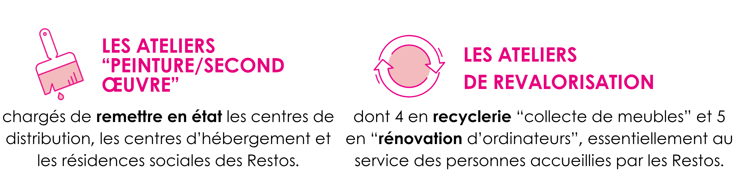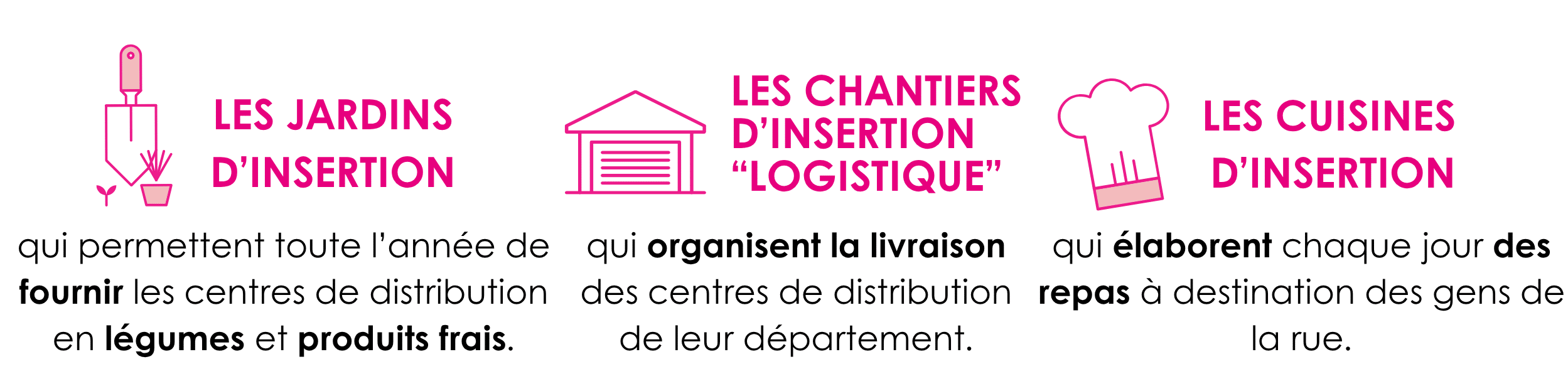 Chaque année, Les Restos du Cœur œuvrent en faveur de l’insertion professionnelle grâce à nos 101 structures d’insertion par l’activité économique. Ces structures sont portées par les bénévoles et salariés de 51 associations départementales (ACI) réparties sur l’ensemble du territoire et habilitées à recevoir des dons.